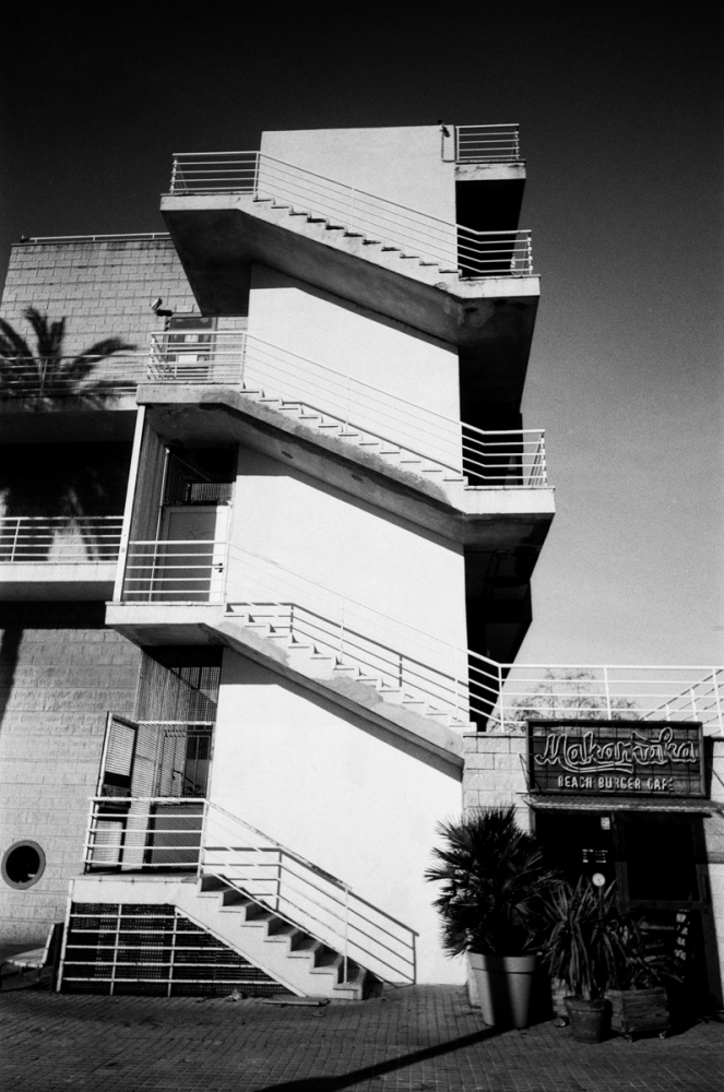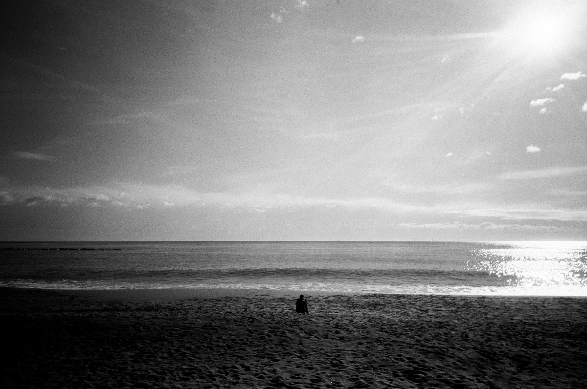 The title of this post only mentioned the sunny black and white beach shots, but I couldn’t shoot this whole roll just there. I had to get away and into the city streets too.