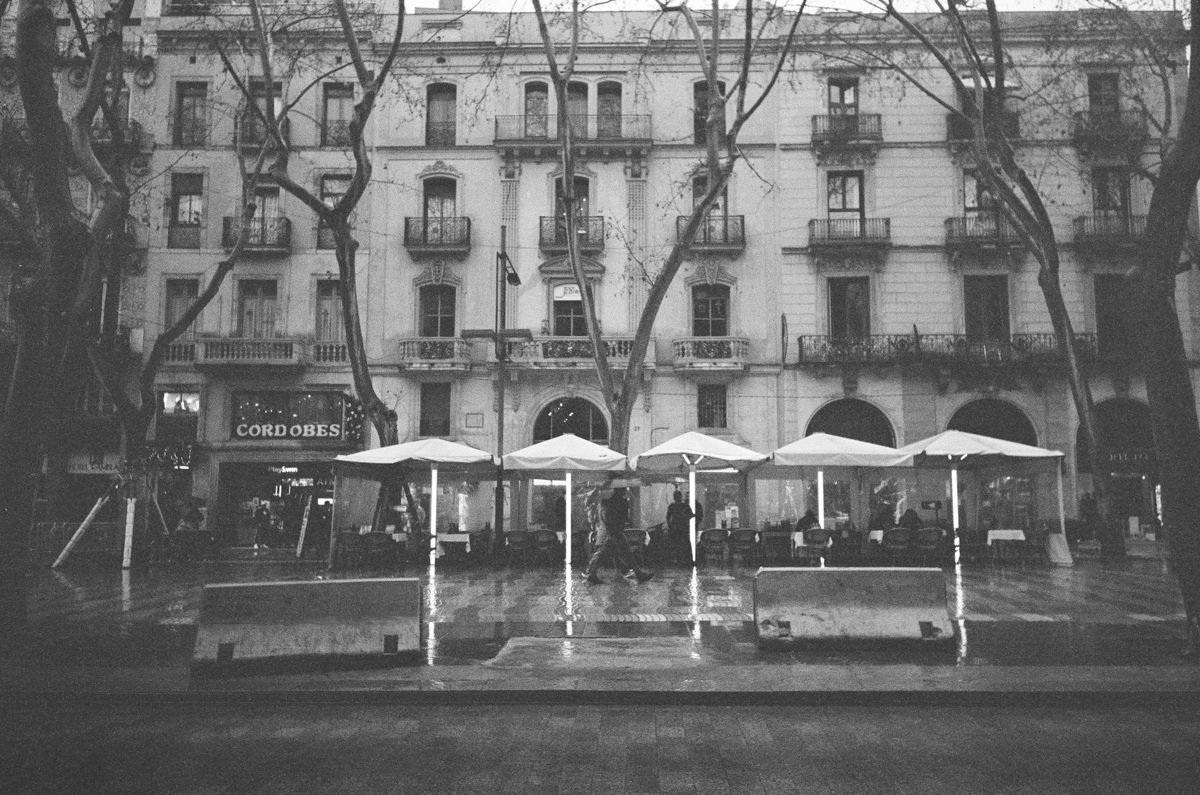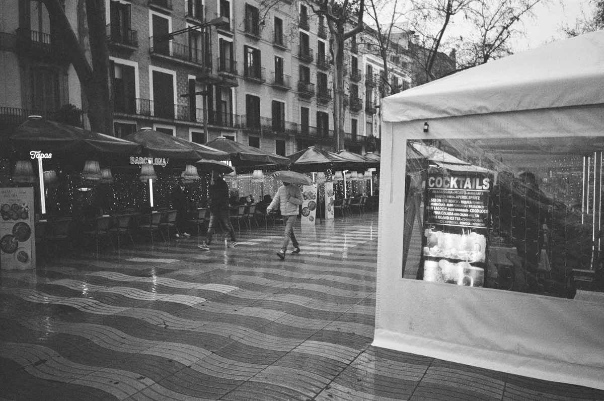 That wasn’t ideal for spontaneous street shots, and with a lot of La Rambla being dug up and repaved, it wasn’t the nicest environment for walking around getting wet either.