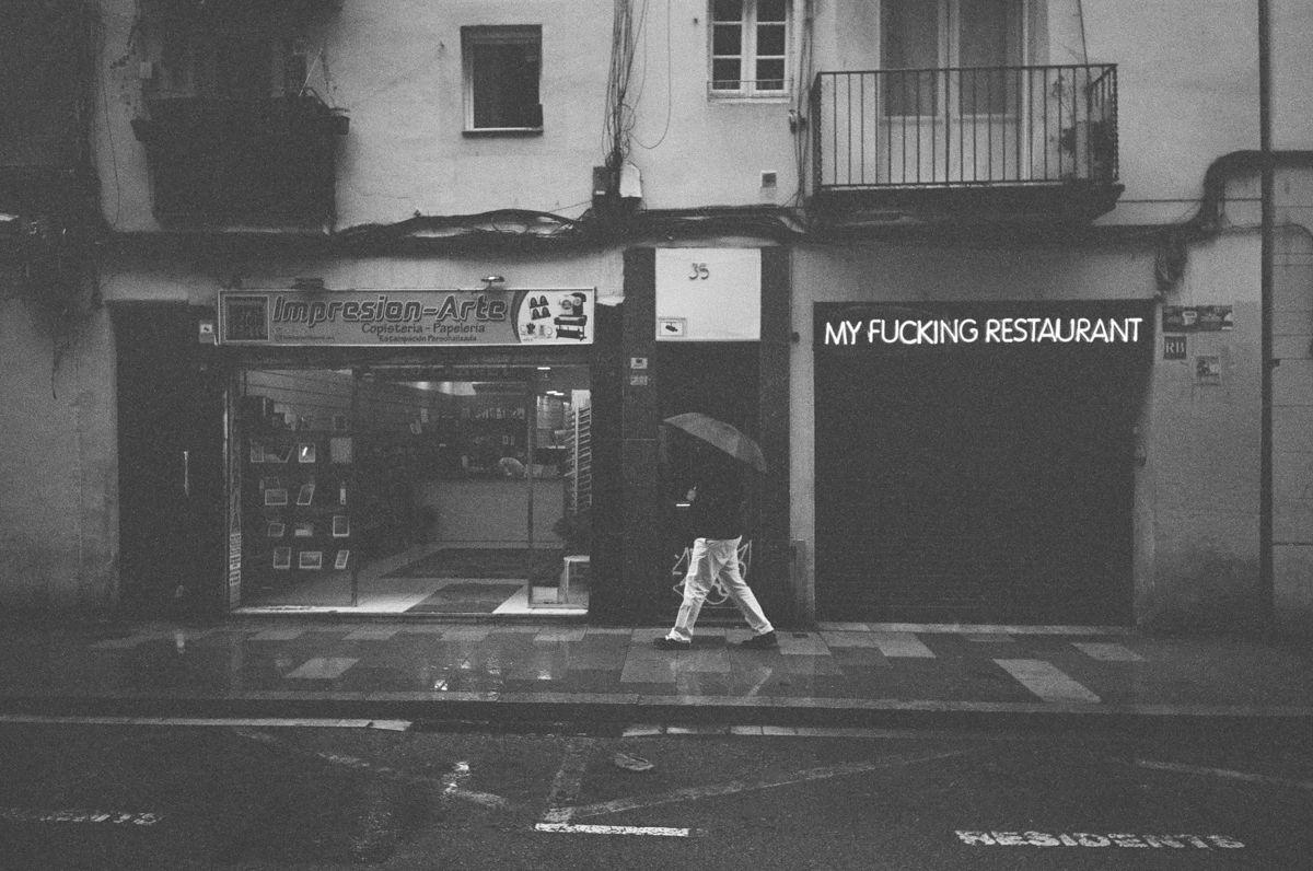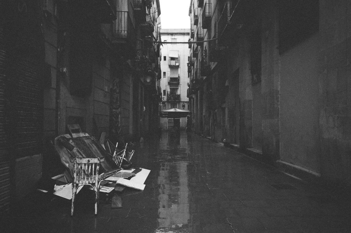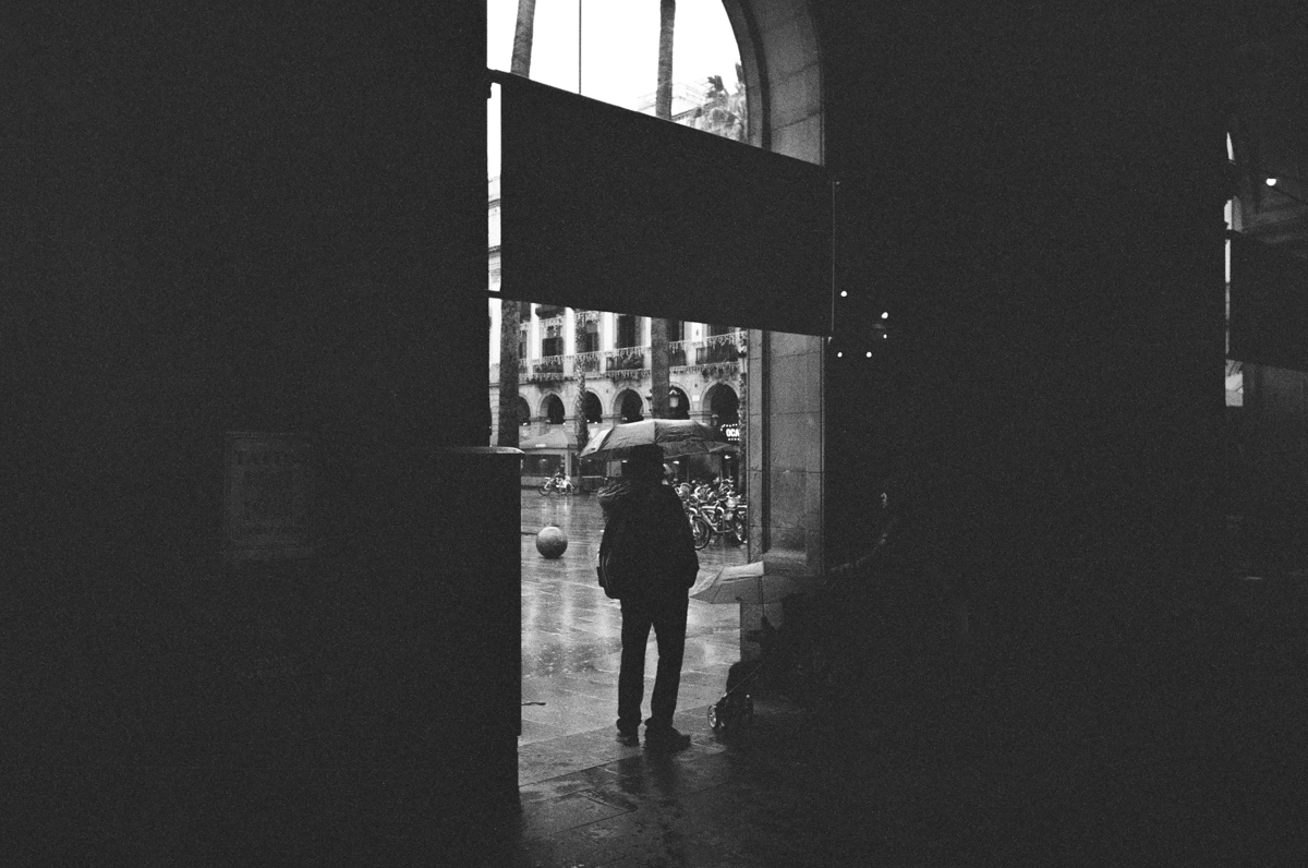 The lemonade I was going to attempt to make from this absolute lemon of a day weatherwise was a pretty simple brew – some street shots around Barcelona on a slightly dark and more than damp day.
