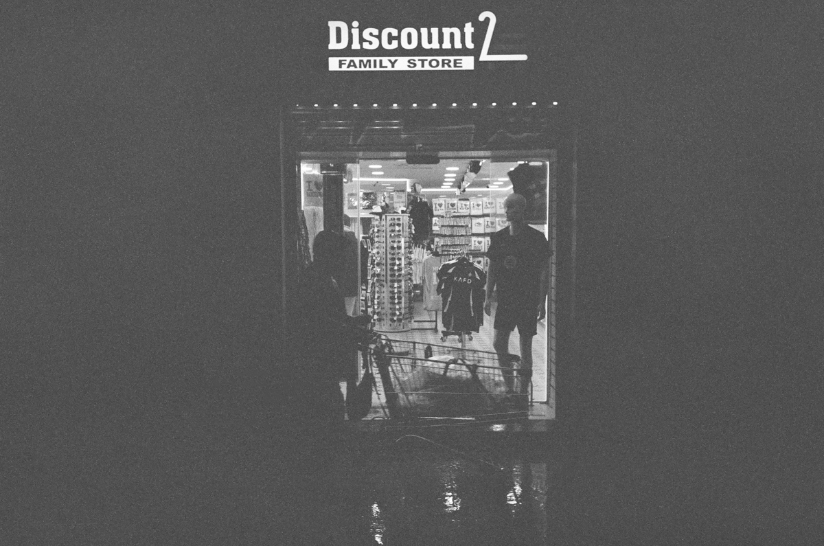 Like in the market where you can use their lights to light up your shot, I was going for the light from the shops to illuminate the people outside of them.