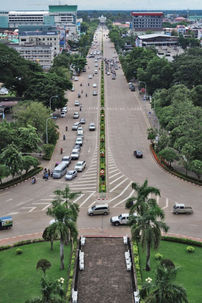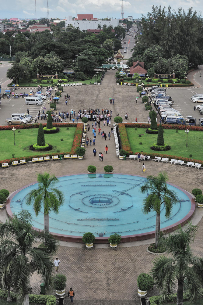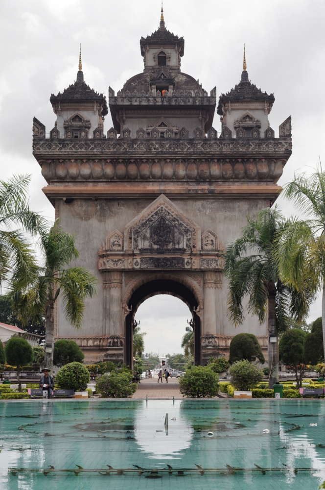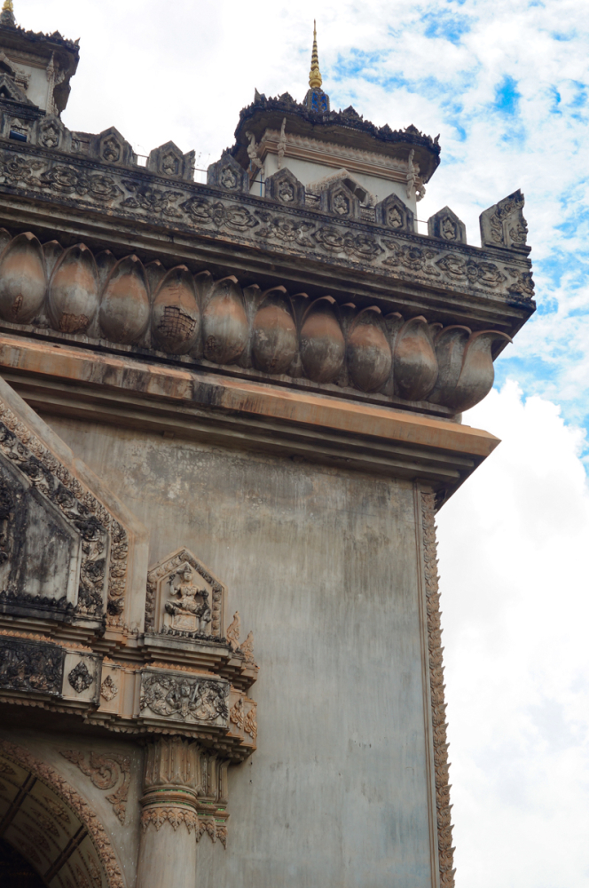 Hopping back onto my bicycle, I took a leisurely ride to my next location: the Patuxai Victory Monument. Often called the Arc de Triomphe of Laos, it is actually dedicated to the memory of those who fought for independence from France.